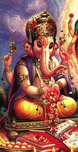 Der wohl meist geliebte Gott im hinduistischen Pantheon ist Ganesha, der Gott mit dem Elefantenkopf. Ganeshas glühende Anhänger betrachten ihn und nicht Shiva als Herrscher des Yoga. Seine gesamte Erscheinung verbinden sie in symbolischer Bedeutung mit den Yogaprinzipien. Ganesha ist auch ein typischer Volksgott, der als Gott der Weisheit, der Überbringer des Glücks und der Beseitiger aller Hindernisse gesehen wird. Vor Beginn einer Reise, eines Rituals oder eines wichtigen Unternehmens wird immer zuerst Ganesha angerufen und verehrt. Er gilt als Schutzherr der Wissenschaften, der Schriften und der Ausbildung.